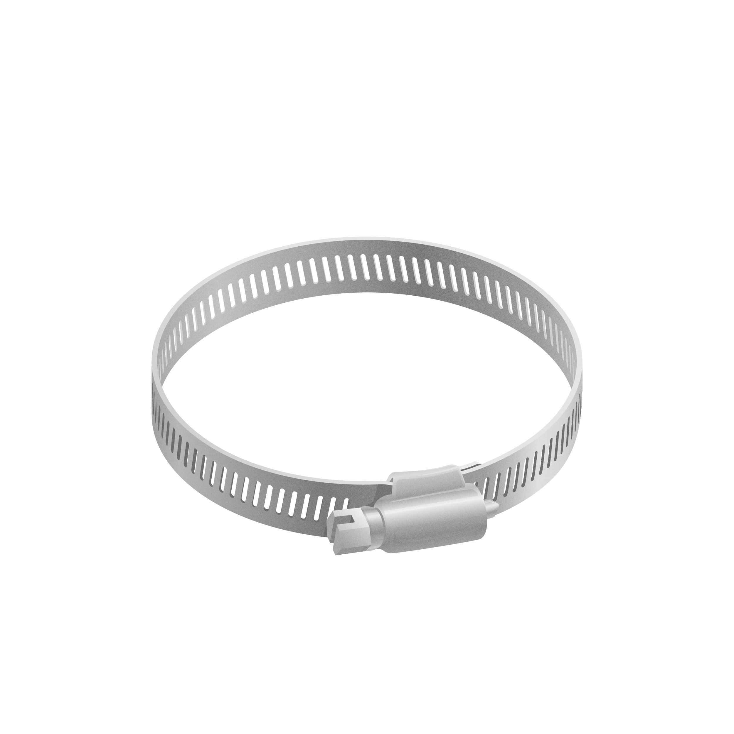 A single stainless-steel hose clamp designed to mount a D605 Data Logger to a 2.5"–8" diameter post. Perfect for larger posts or installations requiring a wider clamp range.